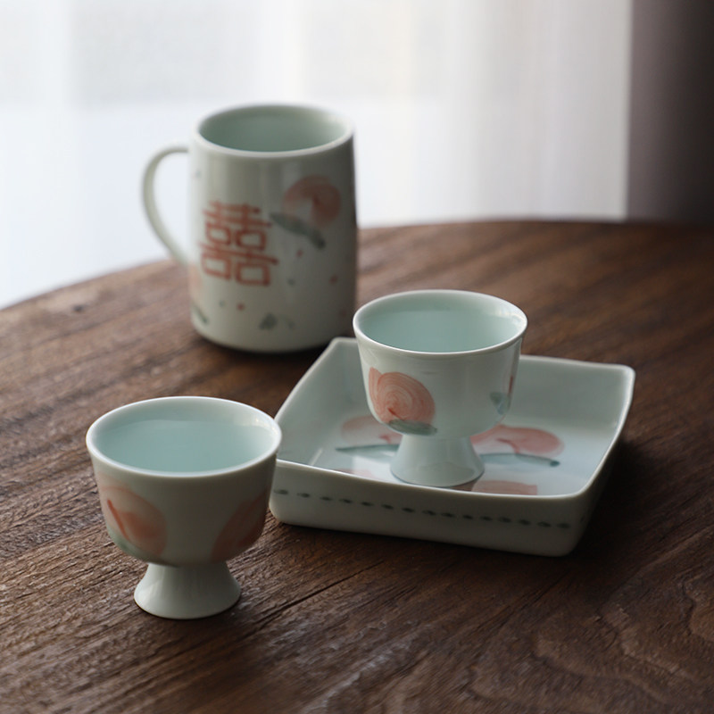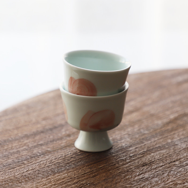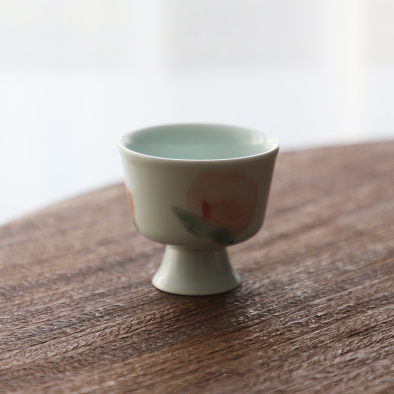 Landscape One peach with peach-coloured hand-painted high foot small tea cup Single cup Japanese style Pink Cup Chinese Master's Cup tea-Taobao