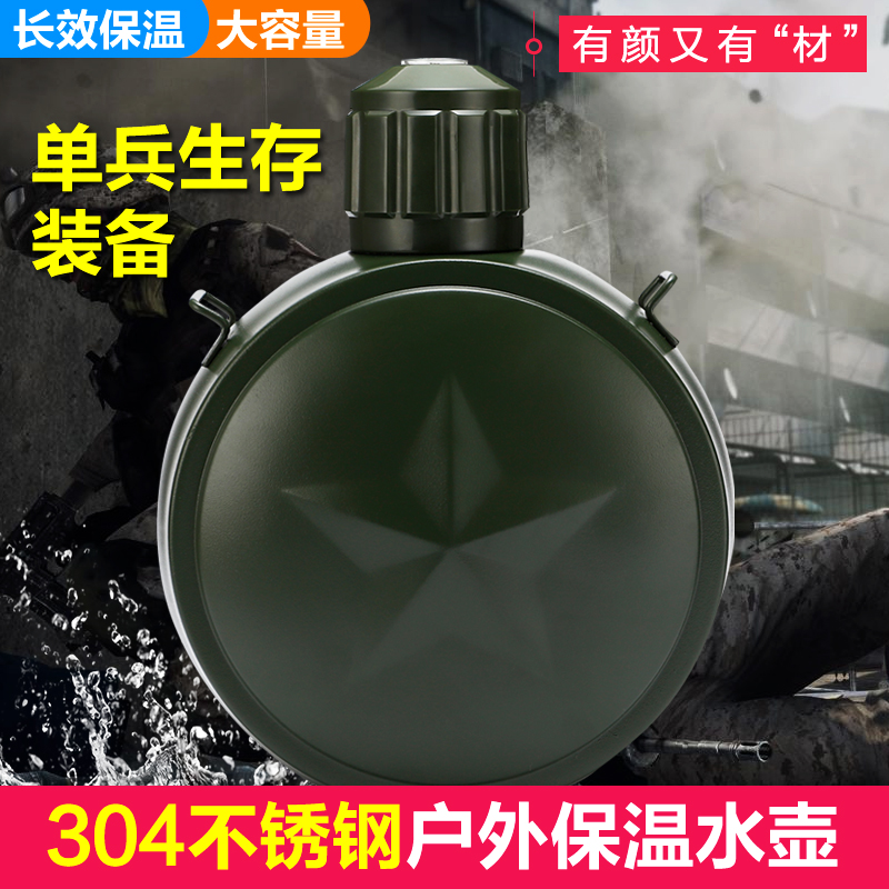 304 stainless steel vacuum insulation kettle Army green outdoor mountaineering travel pot Sports military fan kettle portable packaging equipment