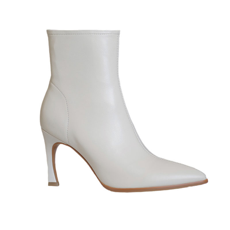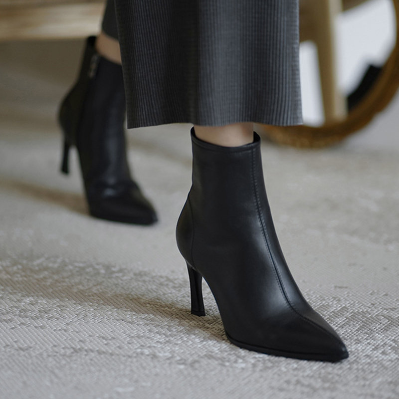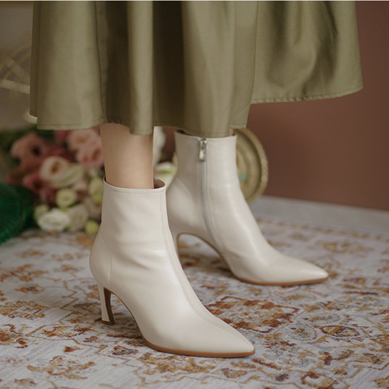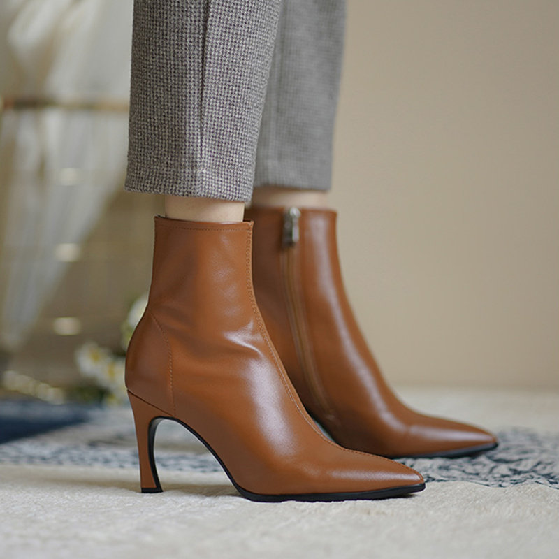 ML Monroe goddess recommended ~ leather high-heeled ankle boots female pointed caramel sheepskin soft bottom autumn and winter Martin boots