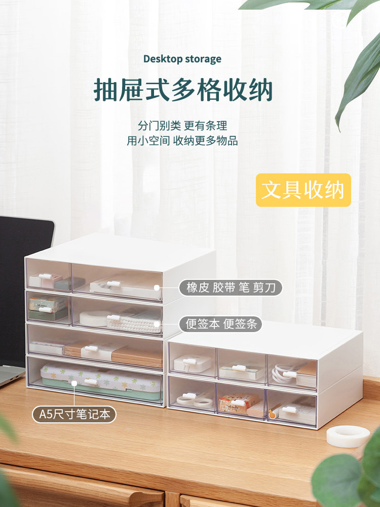 Desktop storage box student stationery office miscellaneous items drawer type sorting box cosmetics plastic storage net red box