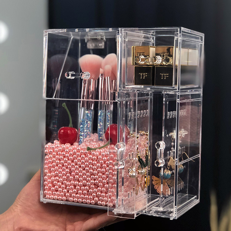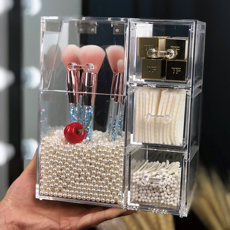 Multifunctional table brush barrel dustproof acrylic beauty brush barrel brush cotton swab storage box jewelry storage rack