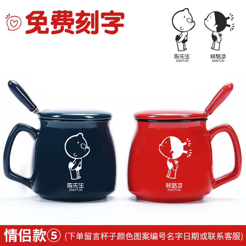Couple mugs a pair of ceramic mugs with lid spoon home office coffee drinking cup creative personality customization