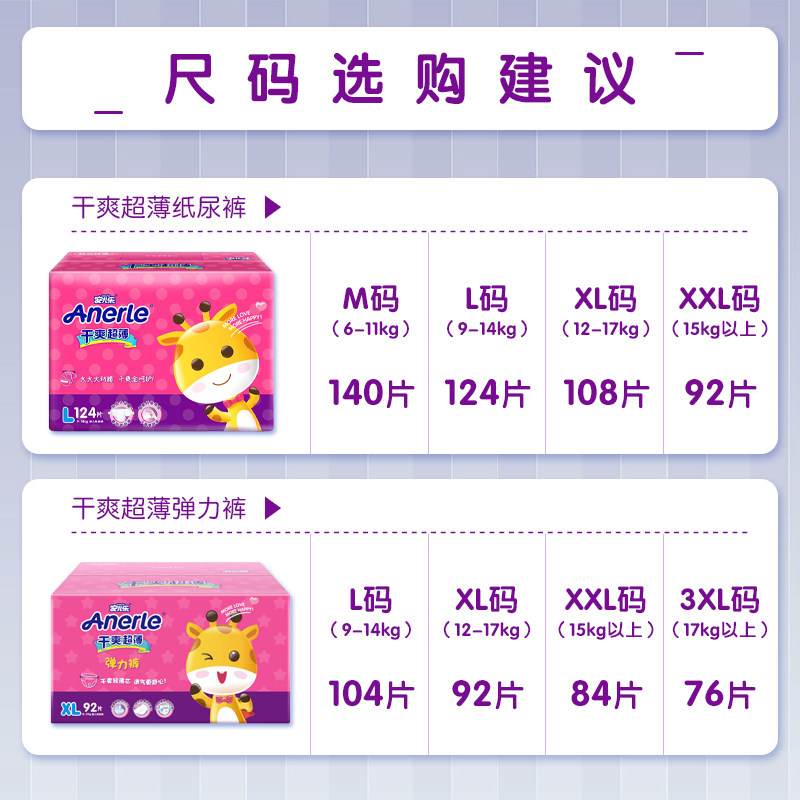 Anerle diapers XXL size 92 pieces Anerle baby diapers dry, light and breathable baby diapers summer