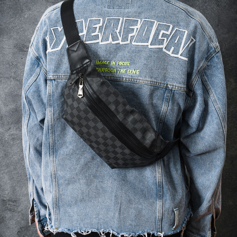 it tide brand men's plaid chest bag casual men's and women's shoulder bag Korean crossbody motorcycle bag men's fanny pack
