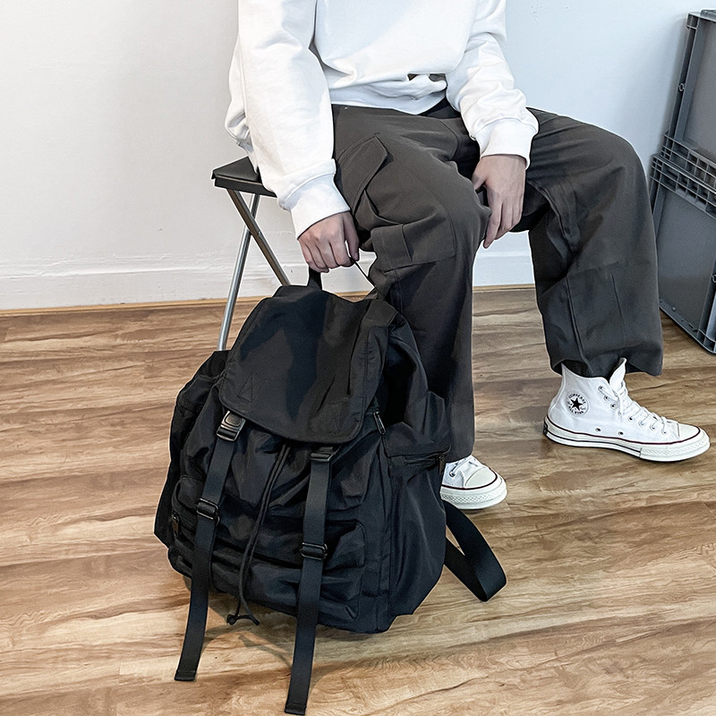 Bag Boys Students Large Capacity Backpacks New Korean Version Street Trend Tooling Functions Pumping Rope Multi-Pocket Double Shoulder Bag-Taobao