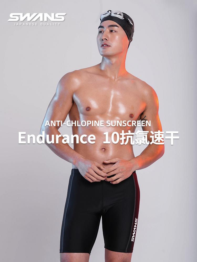 swans swimming trunks men's hot spring swimming trunks anti-embarrassing five-point pants flat corner professional quick-drying men's swimming trunks set