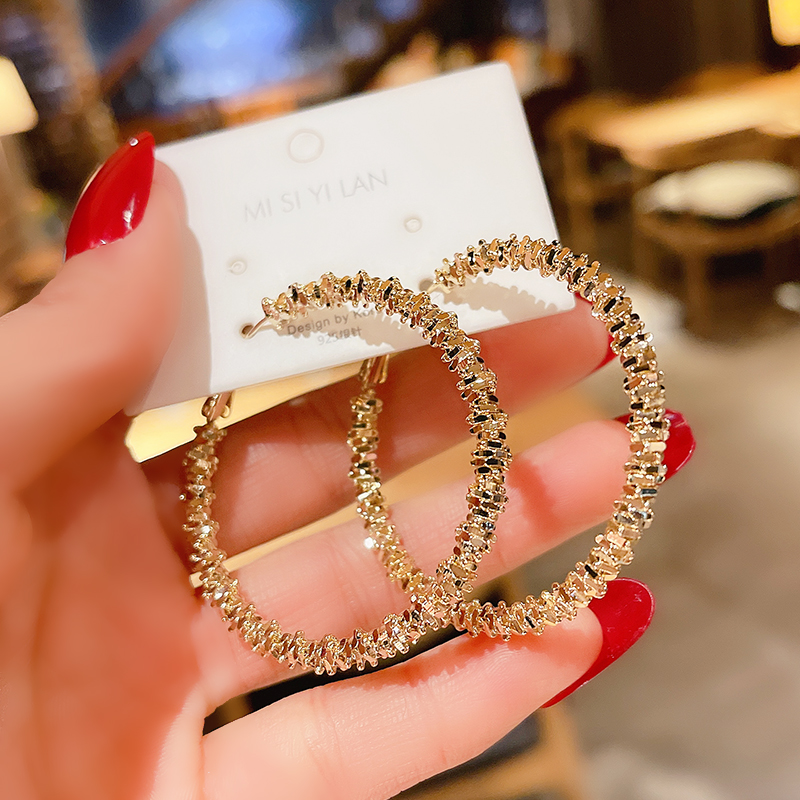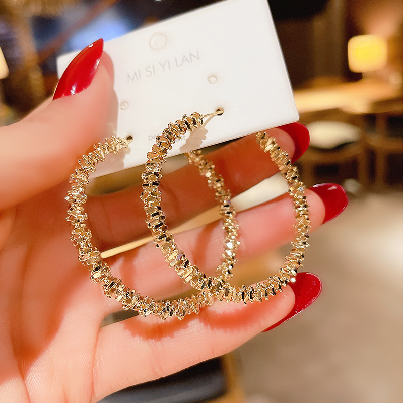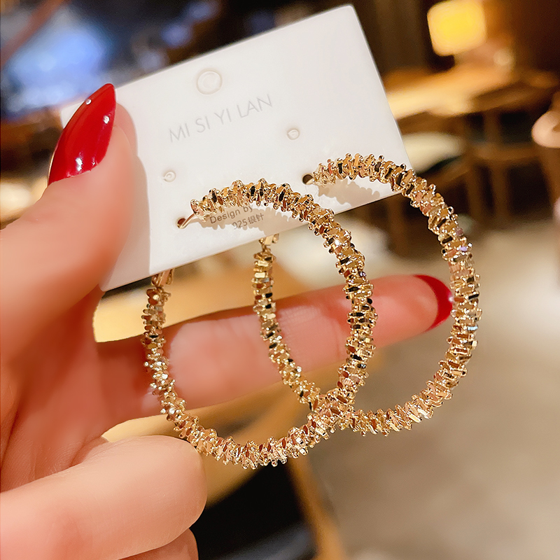European and American exaggerated metal lukewarm wind large earrings small crowddesign feeling ring earrings Earrings Personality 100 lap pure silver needle earrings