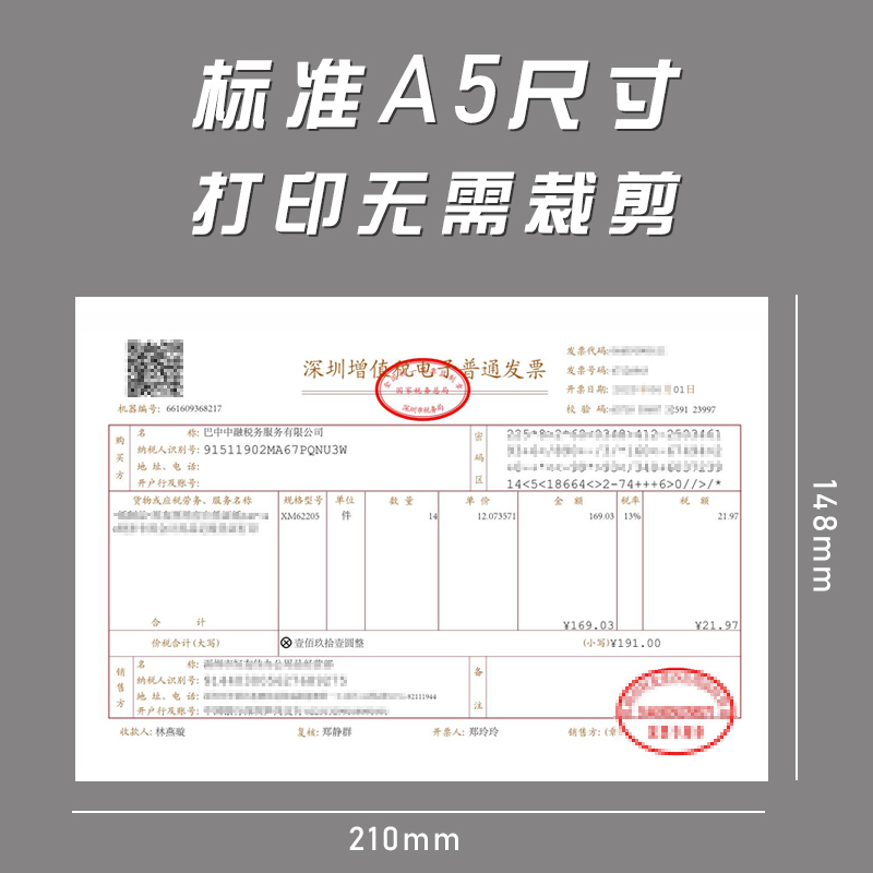 Huidong electronic invoice printing paper 80g blank general purpose general invoice increase tax invoice electronic invoice special printing paper paper white paper office paper A5 voucher printing paper