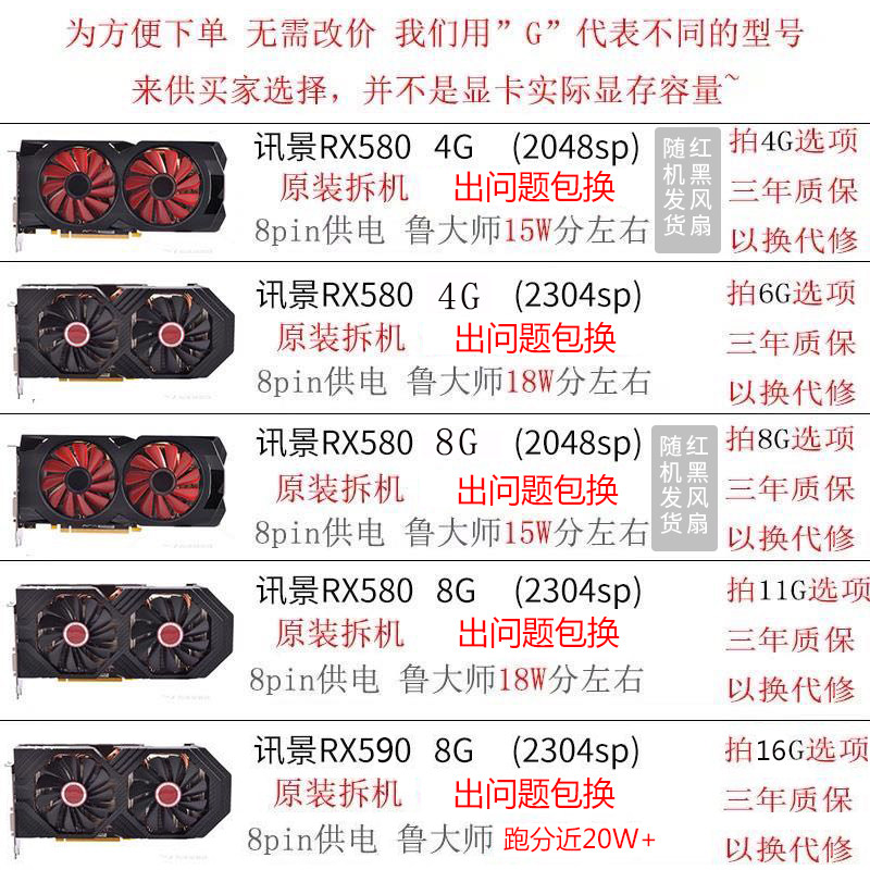 Disassembly RX580 graphics card 4G alone eating chicken desktop computer to do picture independent game news scene 8g black wolf version full of blood