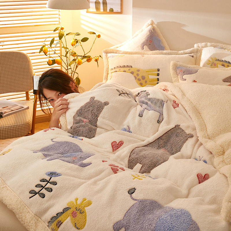 Winter thickening flannel coral velvet plus single-piece single student double-sided warm