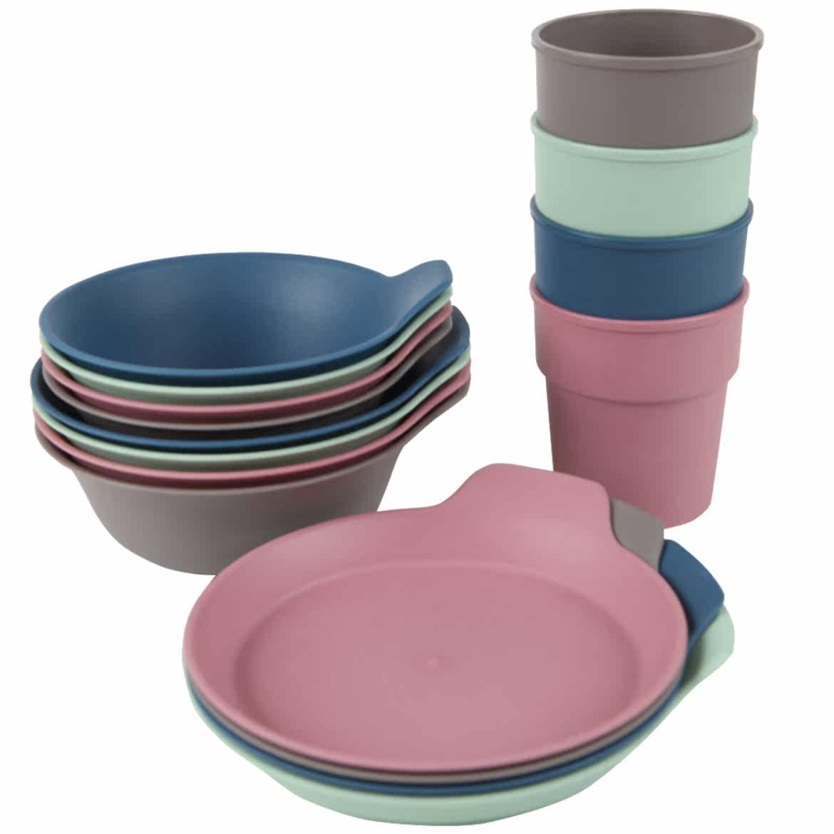 16-piece set (4 plates, 4 cups, 4 large bowls, 4 small bowls) Warm Reminder