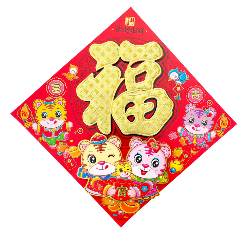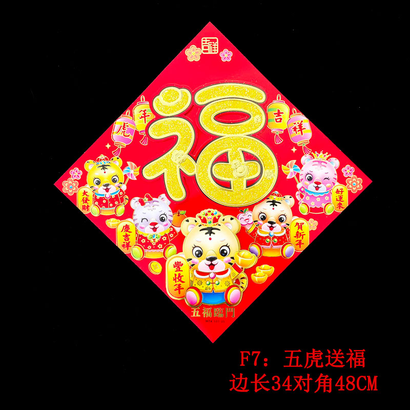 2022 Tiger New Year's Lunar New Year Cubism Cubism Little Tiger FuCharacter Gate Sticker Thatkin Decorative Year Painting into the family door