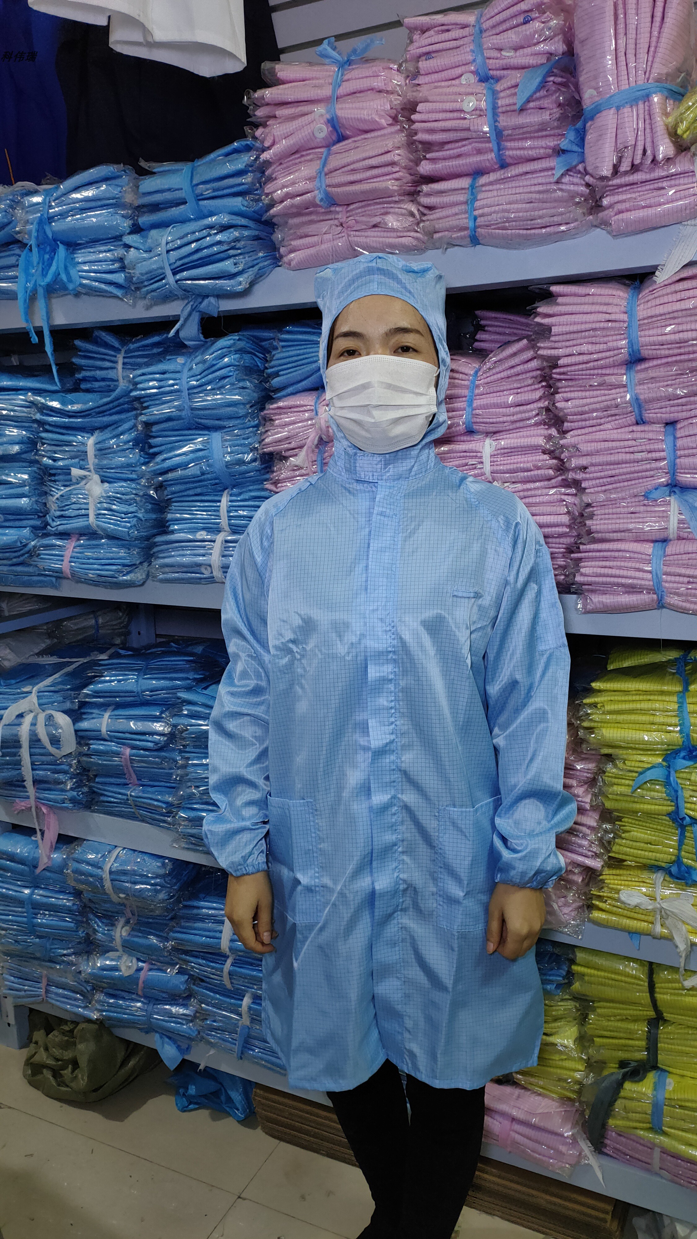 Antistatic grid Lianhood large coat with long version of the hat workwear Foxconn with the same blue coat