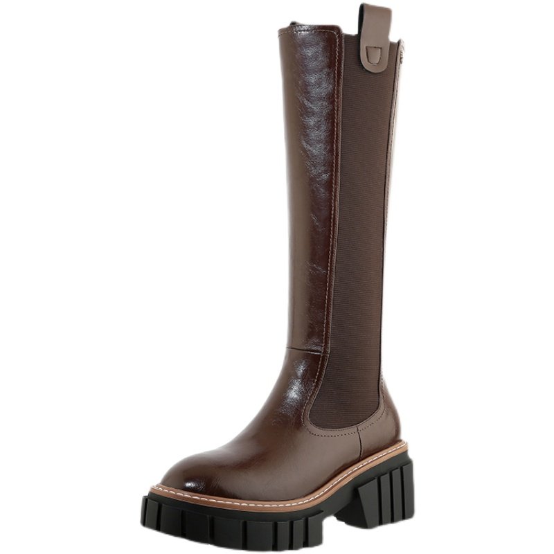 Long boots women's knee-high leather boots British style Martin boots women's heightening boots tall and small slim riding boots