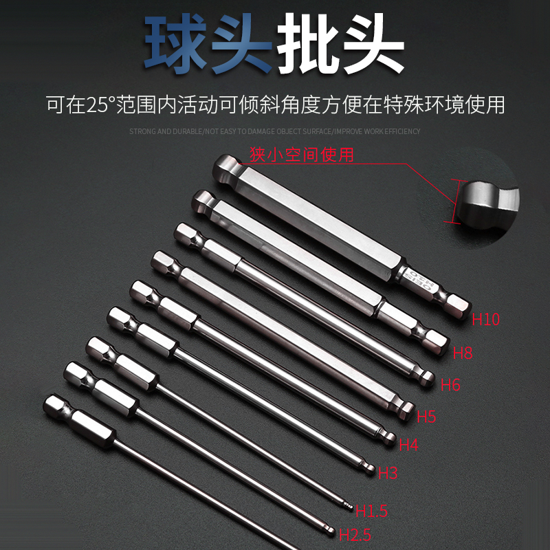 Ball head inner hexagonal batch head pneumatic modification cone wind batch nozzle electric screwdriver head S2 alloy steel hexagonal batch head