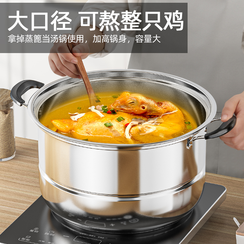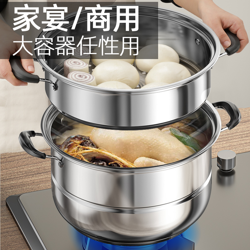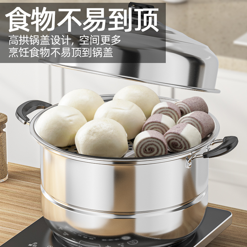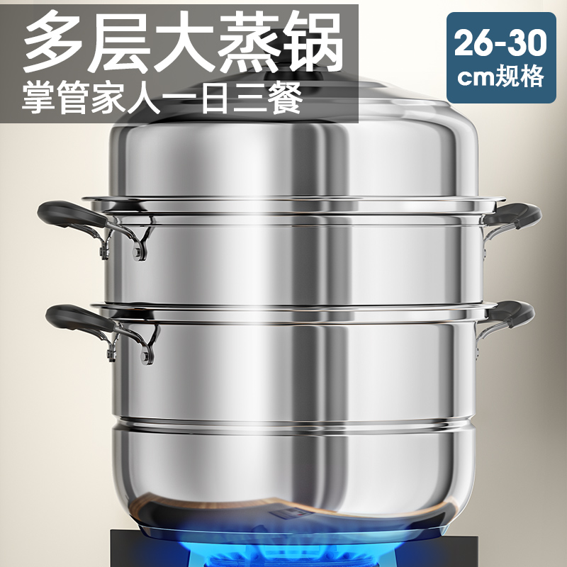 Stainless steel thickened steamer three-layer household small cage drawer large capacity gas stove double-layer steamer pot with steamed steamed steamed buns