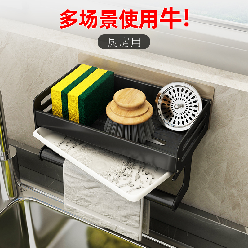 Kitchen Shelve Free sink Sink Smear Wall-mounted Sponge Drain Hanging Rack Dishware Appliance Containing Shelf Black-Taobao