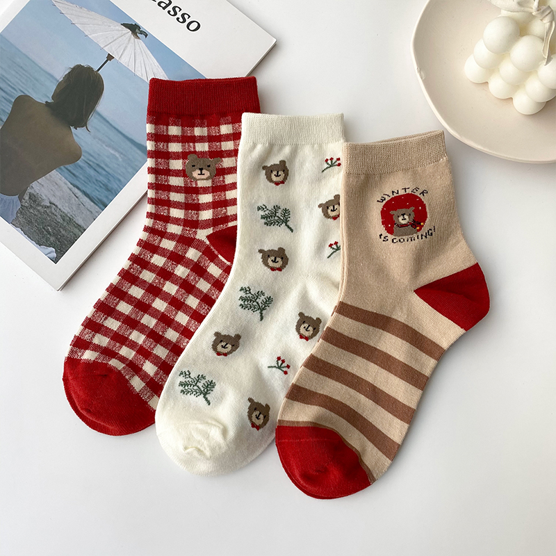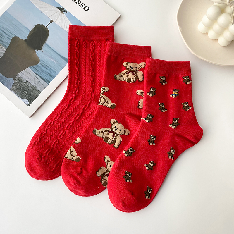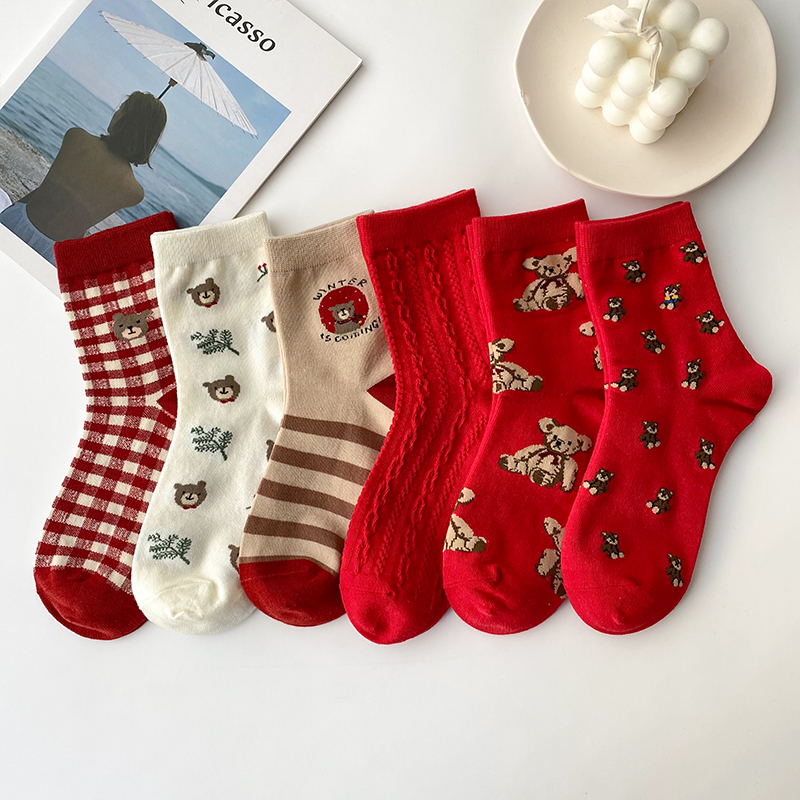(Combination 1) The cute red bear in the tube socks female as shown in the picture 6 pairs (combination 2) The cute red bear in the tube socks female in the picture 4 pairs (combination 3) The cute red bear in the tube socks for women