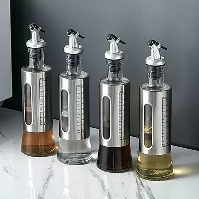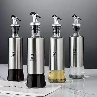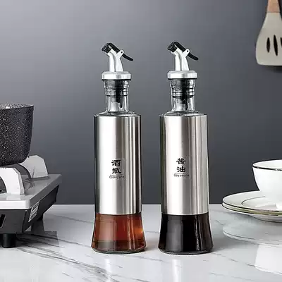 304 stainless steel oil Pot Kitchen household automatic opening and closing glass seasoning bottle soy sauce bottle vinegar bottle oil bottle set