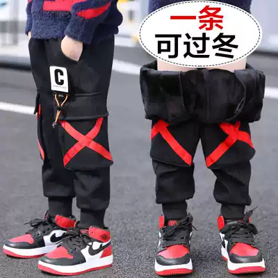 Boys pants 2021 new autumn winter overalls children's casual pants children's casual pants in big Children Baby plus velvet padded children's clothing