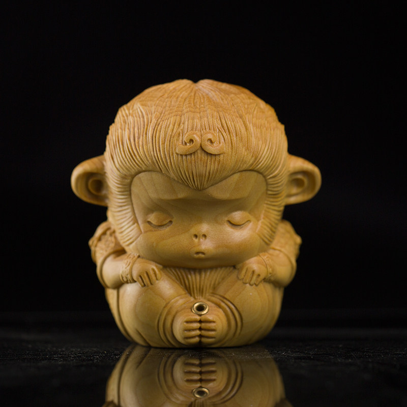 Wen play hand pieces Men play with boxwood carving Monkey Zen tea Room Sun Wukong incense plug small ornaments
