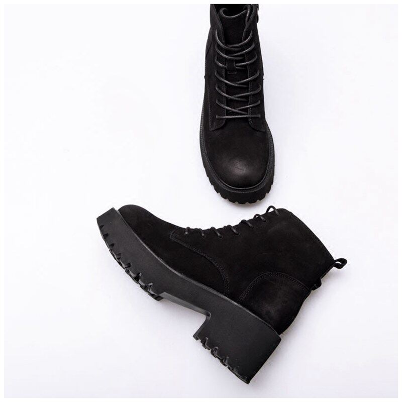 Thick-soled Martin boots female 2021 new high-heeled short boots thick-heeled black British boots