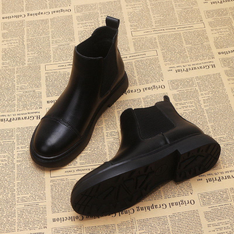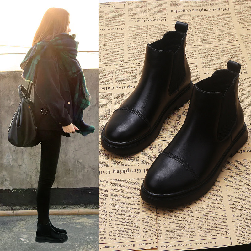 Gush warm Inn Wind Genuine Leather Martin Boots Woman 2021 New Women's Shoes Fashion Flat-bottomed Round