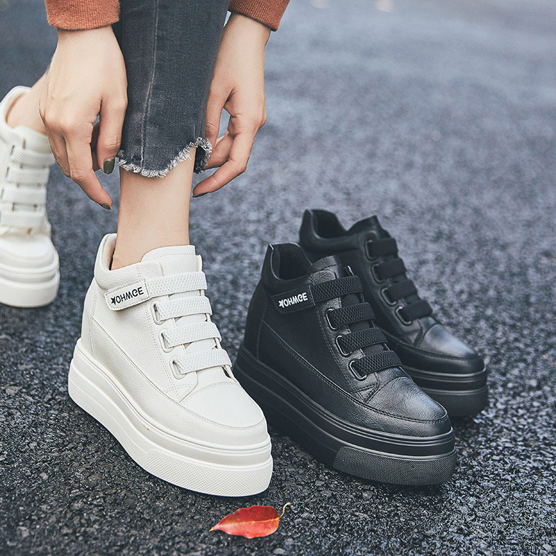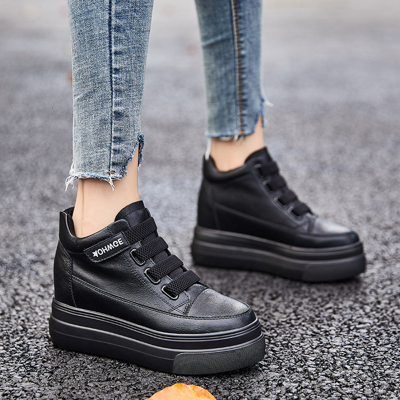 Tide brand fashion inner heightened leather platform shoes women's 2022 new women's shoes all-match plus velvet warm boots