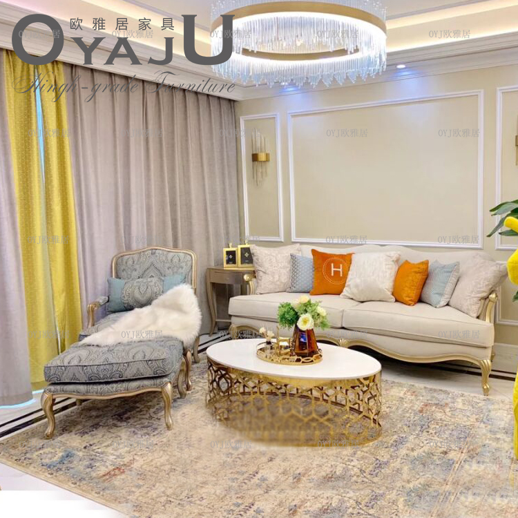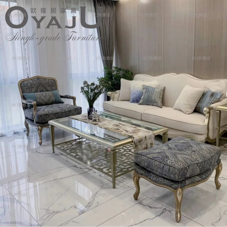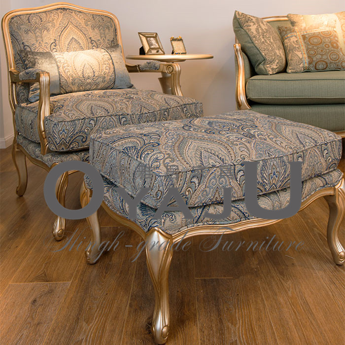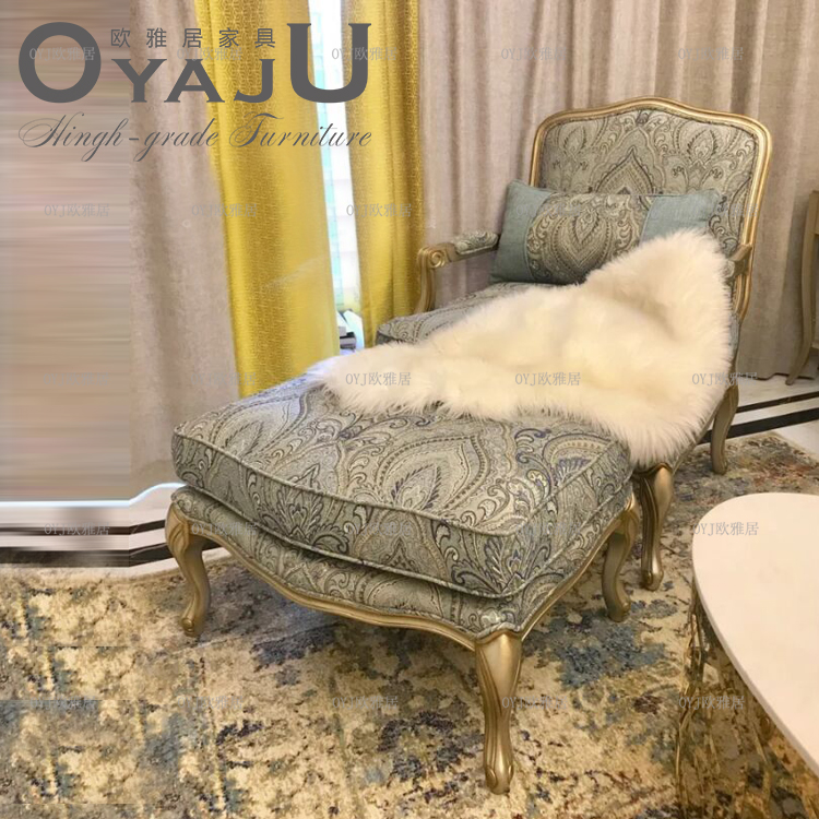 Customized modern American light luxury single sofa cotton printing fabric villa tiger chair living room pedal solid wood