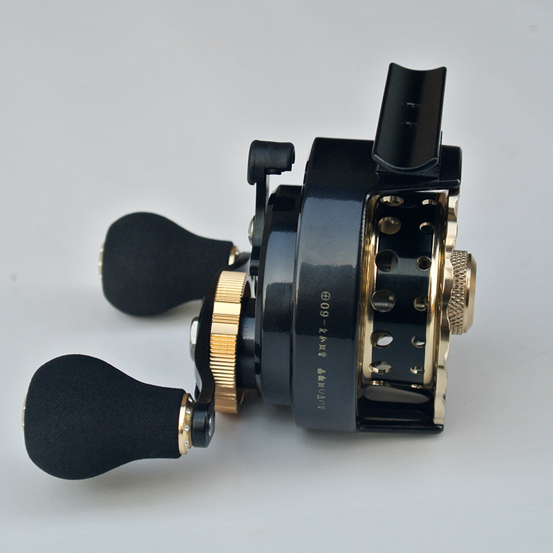 The direction of the handle of the fishing wheel: