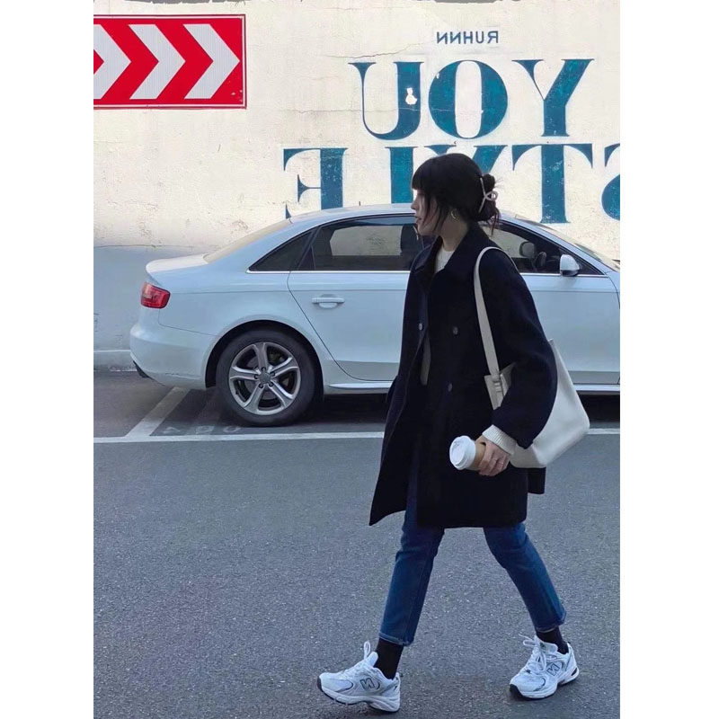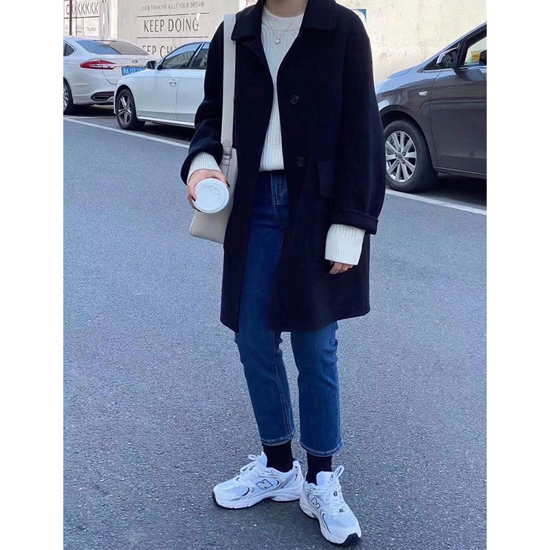 Double-sided cashmere big coat female medium long version 2021 autumn winter new loose Hepburn fur coat small sub