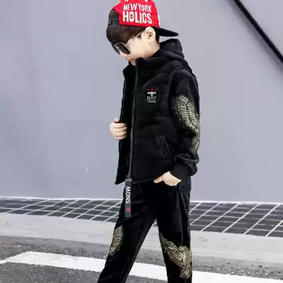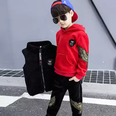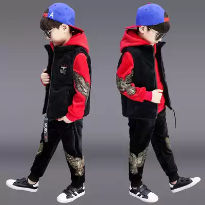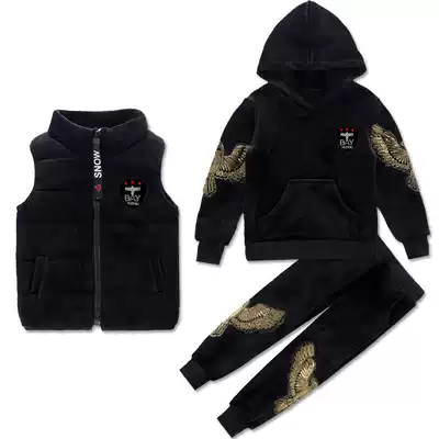South Korea Golden Velvet Set Boys Winter Clothes Middle School Children's Suit Three Pieces Korean Handsome Vest