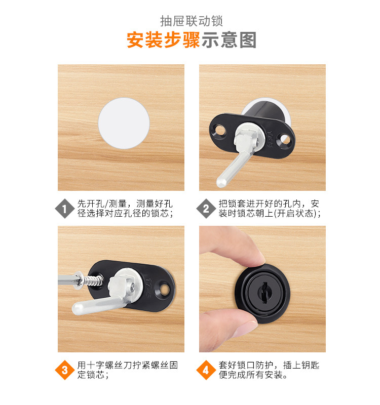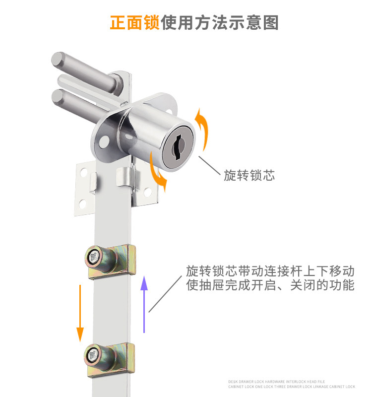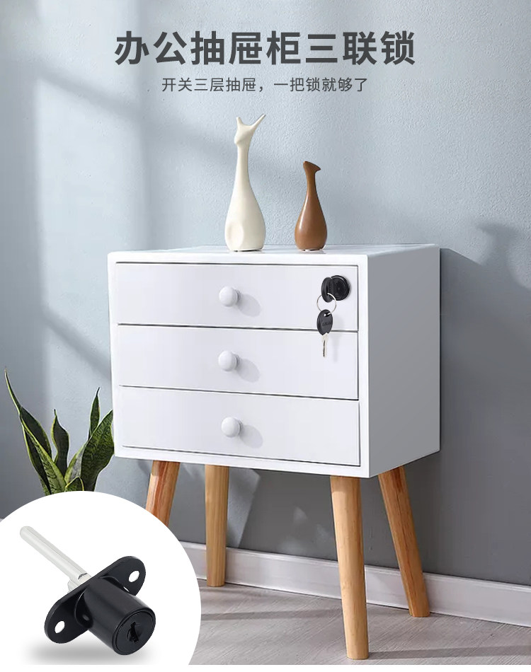 Desk drawer lock side home triple key lock file cabinet lock one lock three drawer lock linkage cabinet lock cylinder