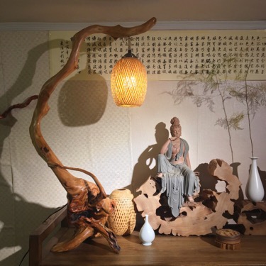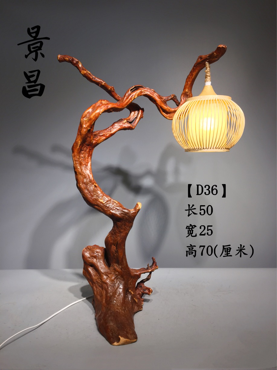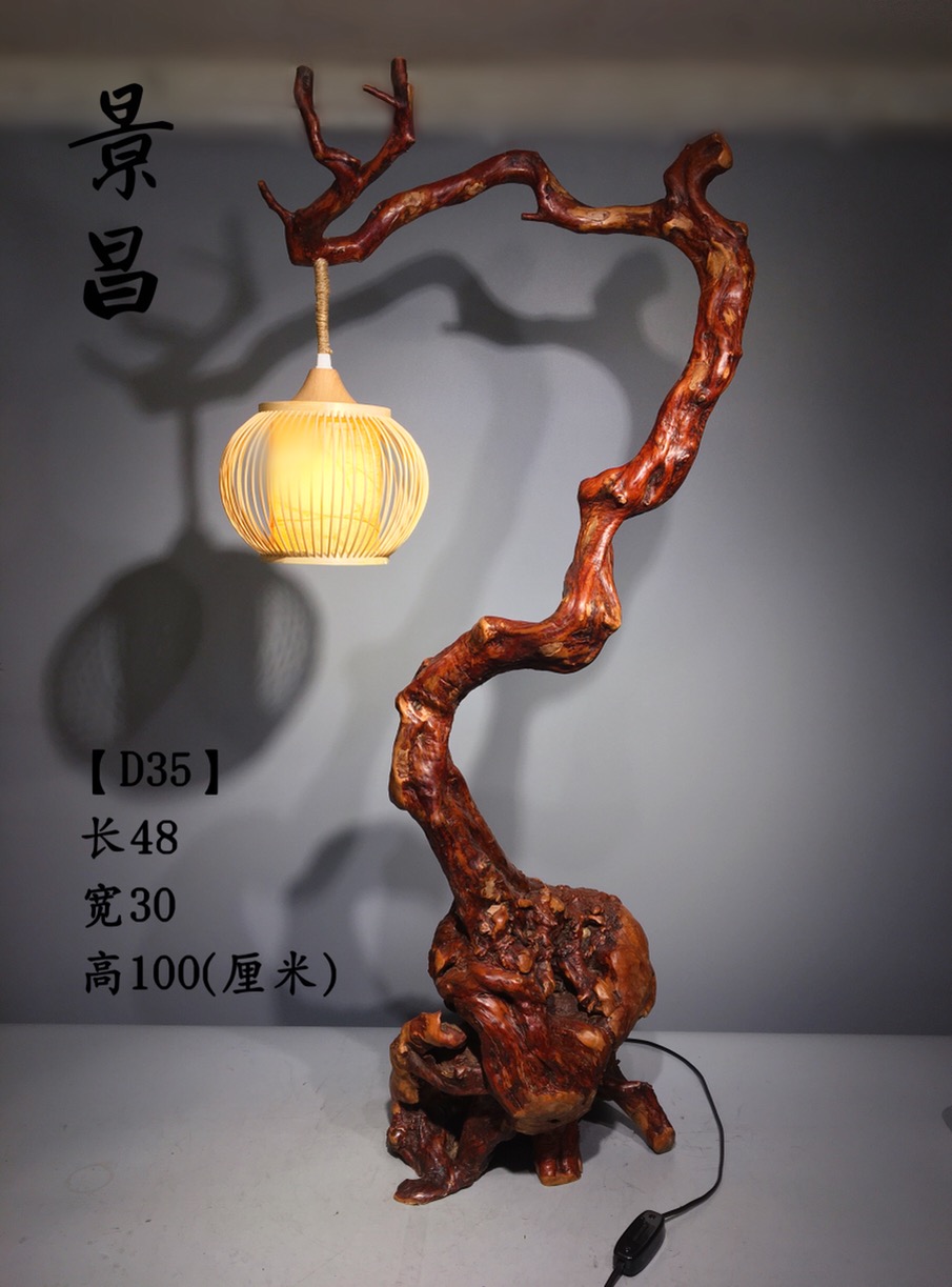 Natural tree root art table lamp with shape root carving floor lamp new Chinese-style Japanese-style tea room set table wood pumpkin lamp