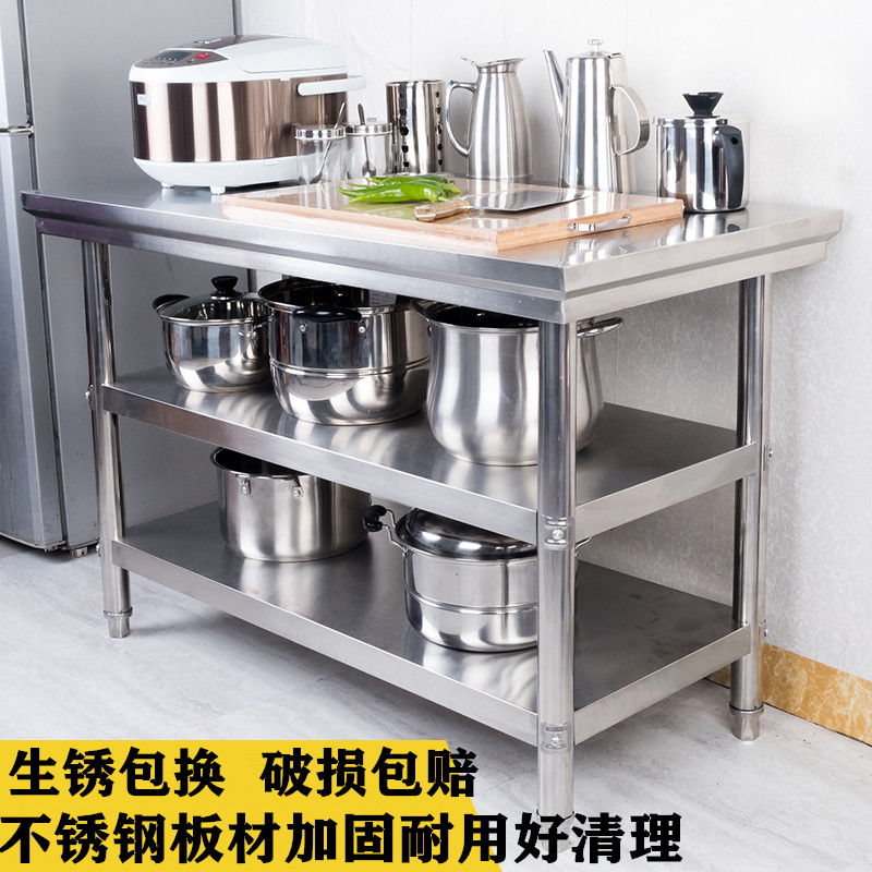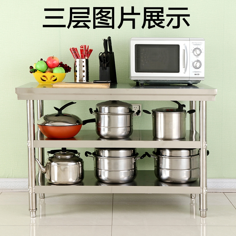 Three-layer stainless steel workbench kitchen dedicated operating table household cutting table table for commercial padding packaging table