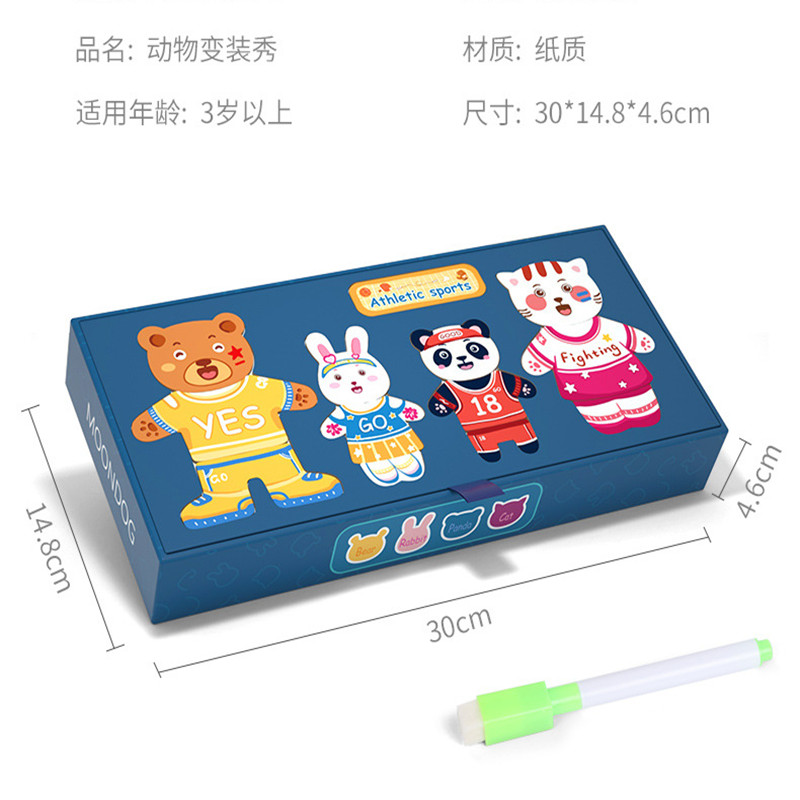 Small tiger changing (no magnetic) small bear changing (no magnetic) small rabbit interchanging (no magnetic) small bear changing clothes (magnetic section)