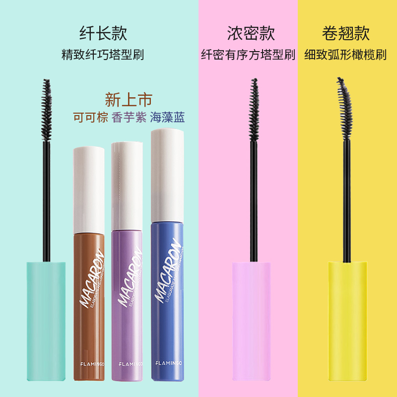Flarebird Macaron Mascara Cocoa Palm Fiber Long Thick Curly Blue Purple Colored Fine Brush Head Waterproof Without Fainting