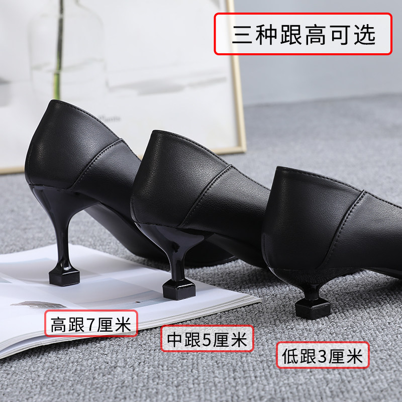 High heels women's spring single shoes 2022 new stiletto heel mid-heel cat heel black small leather shoes professional two wear work shoes