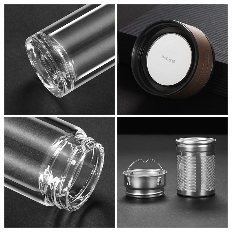 Glass teacup Personal high temperature resistant tea water separation double-layer glass men's high-grade thickened business water cup