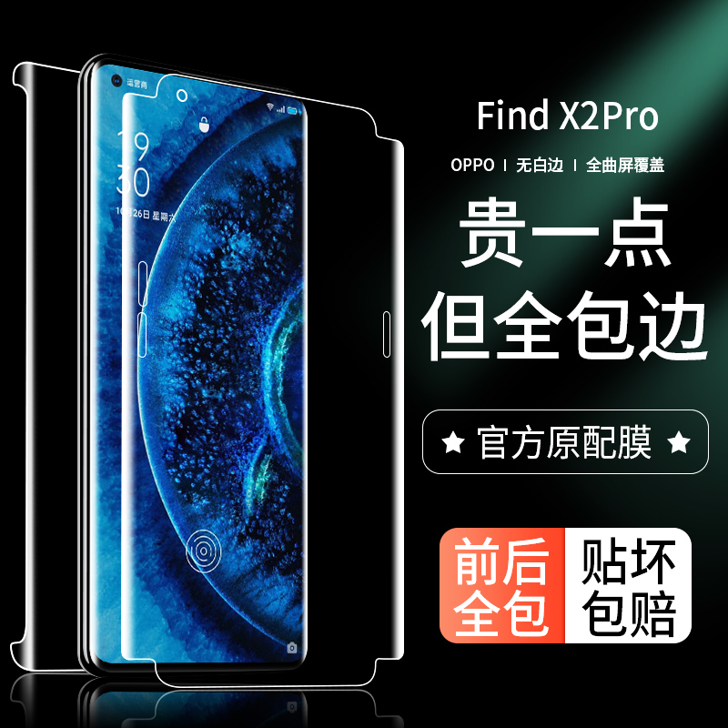oppofindx2 tempered film findx2pro full screen coverage findx2 curved mobile phone all-inclusive edge full-glue UV lens hydrogel soft film back bumper strip pr0