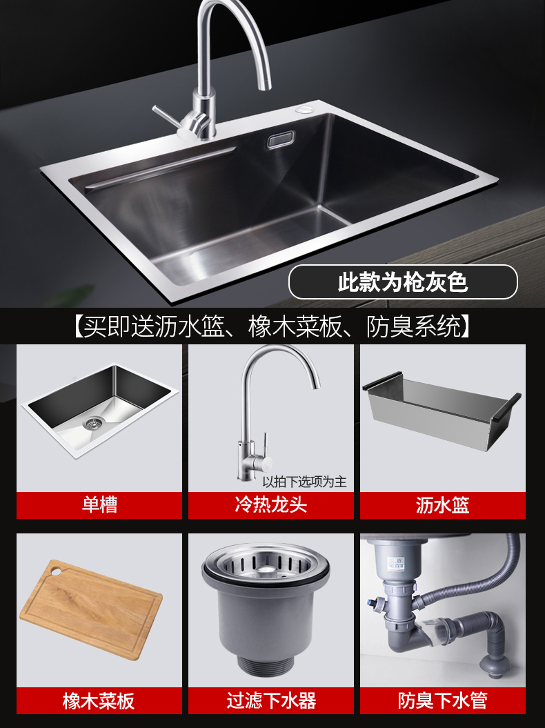 Submarine 304 stainless steel sink Kitchen household wash basin single tank handmade basin under the basin wash tank sink