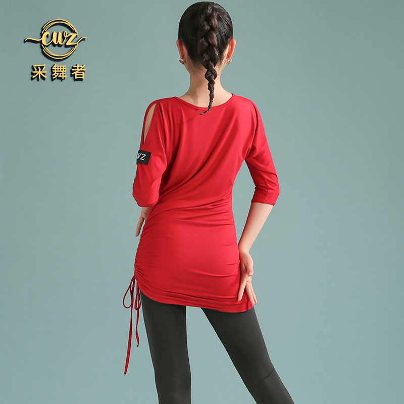 Dancer Latin dance clothes female adult new dance dress bat sleeve drawstring top sexy exercise clothes