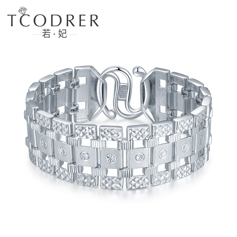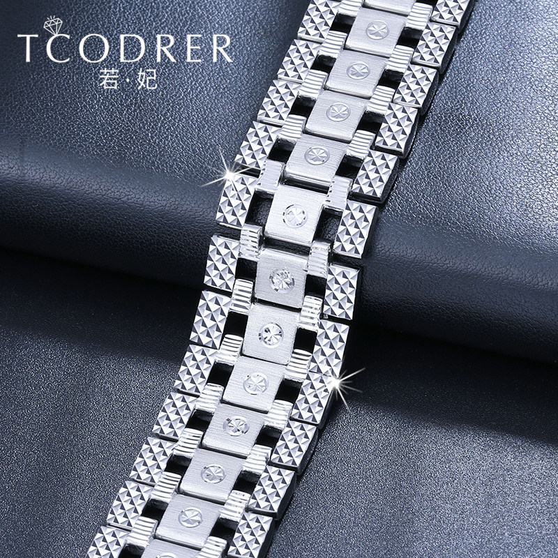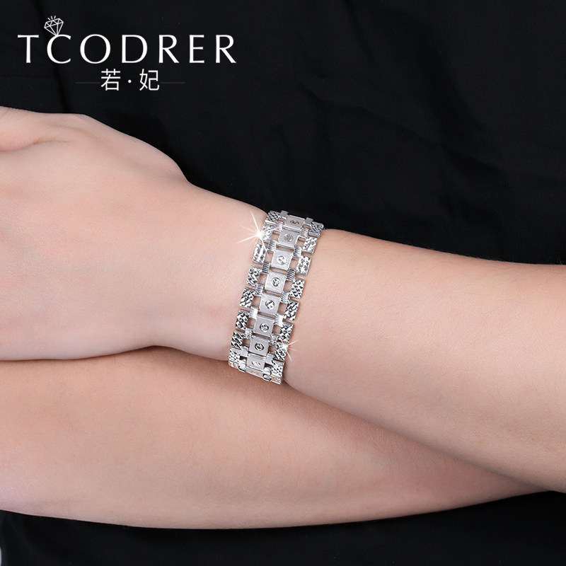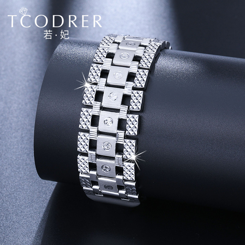 pt950 platinum hand chain men's pure gold bracelet White gold wide face watch chain domineering bracelet thick can be customized