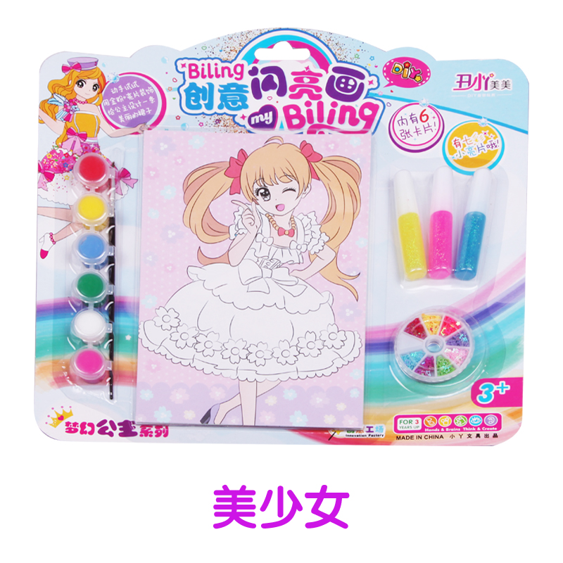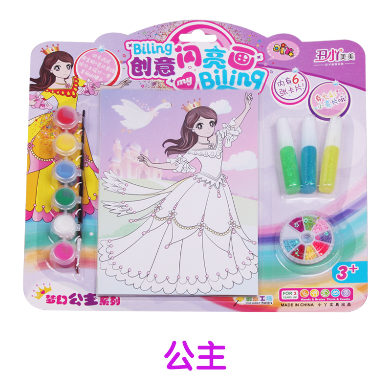 New creative shiny picture of children Diy handmade girl Princess drawing Pink Graffiti Painting Toy Sets