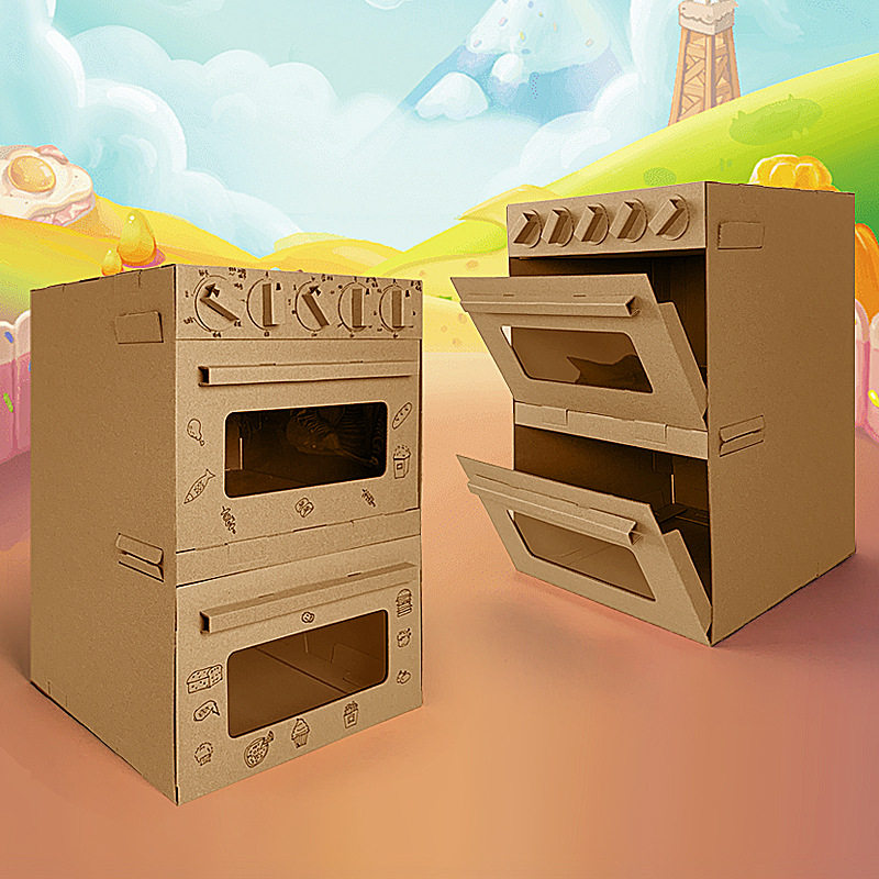 Play house wine cardboard carton kitchen toys DIY children's oven refrigerator kindergarten boys and girls handmade