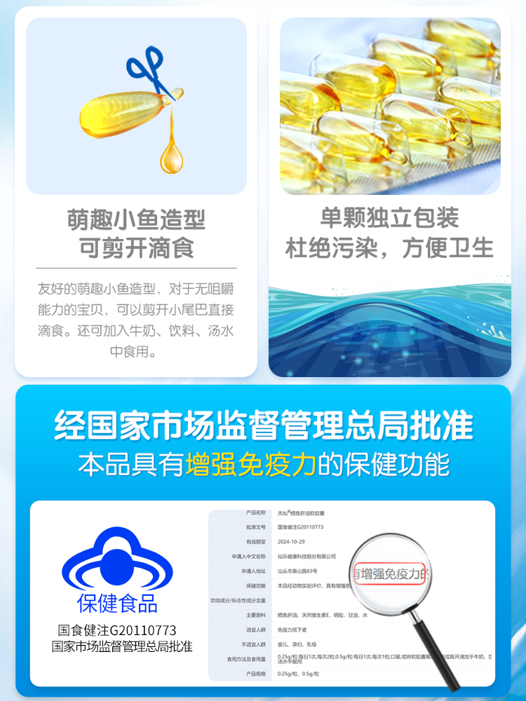 Angqi Newt Cod Liver Oil Soft Capsule Fish Dry Oil Children Baby Fish Fish Oil Young Children Students DHA Vitamin A