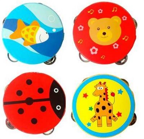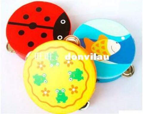 Montessori Baby Kids Toys Wood Cartoon Animal Ring Bell Drum