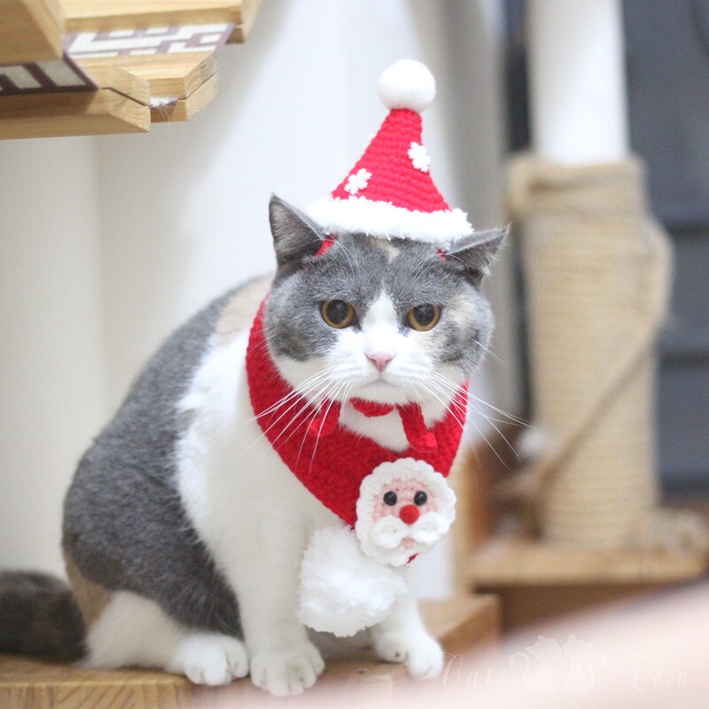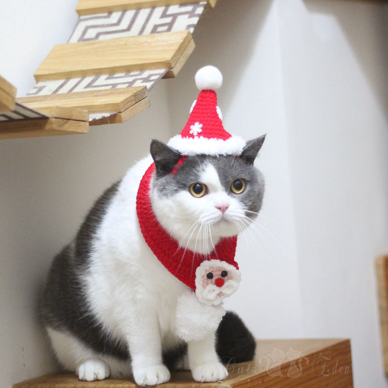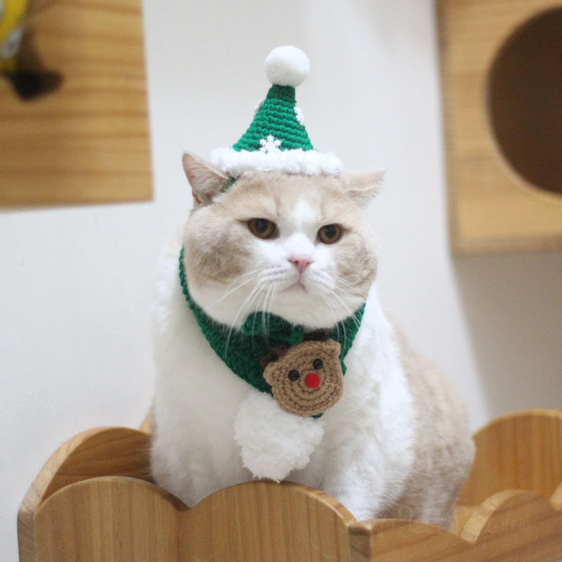 Pet Kitty New Year Christmas Festive Scarves handmade wool knit Knitted Scarves Snowflake Hats Deer Corner Festival Dress-Taobao