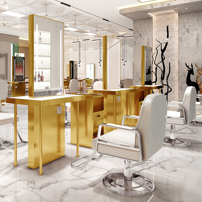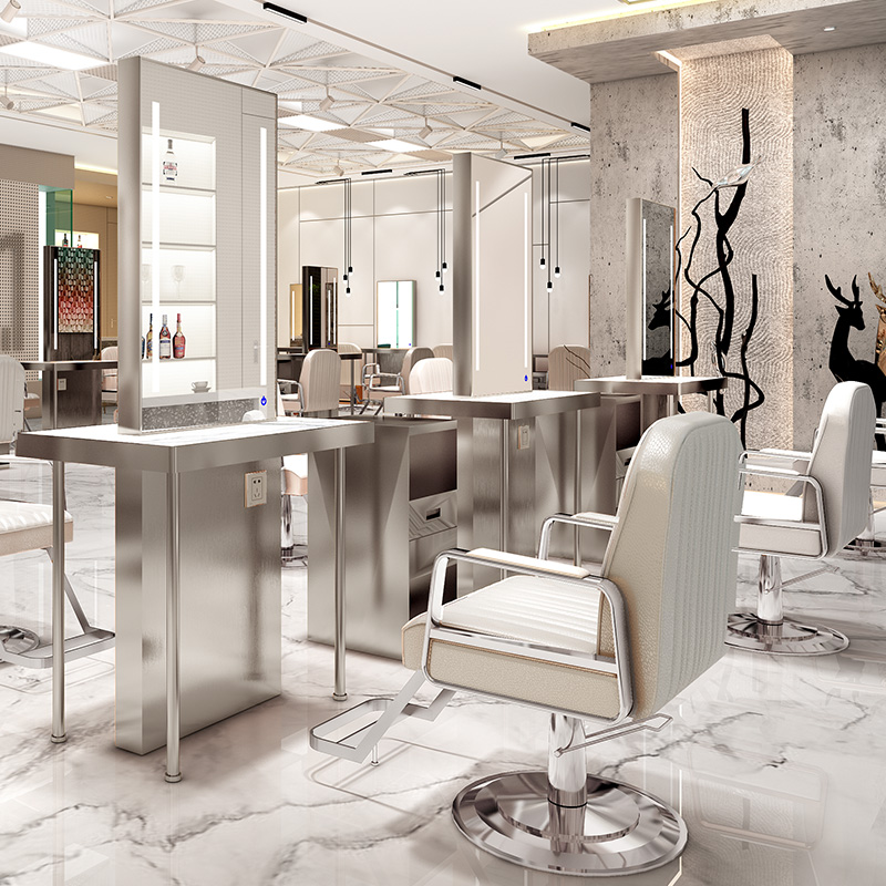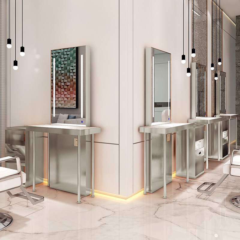 Net Red Hairdressingshop Mirror Desk Hair Salon Special Beauty Hair Shop Mirror Stainless Steel With Lamp Makeup Sheen haircut mirror sheet Double sided mirror