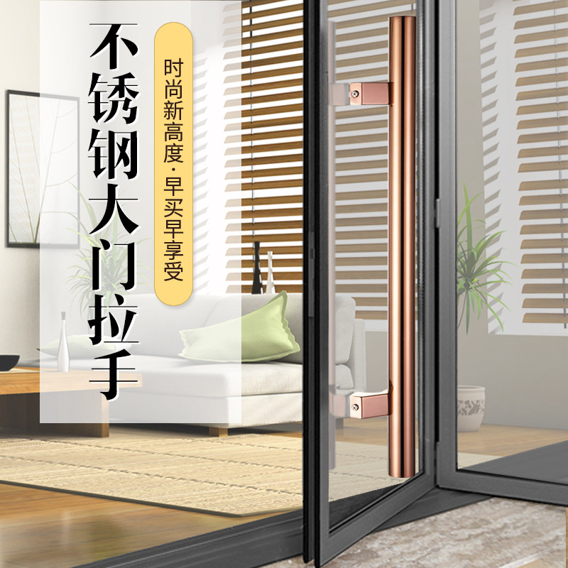 Stainless steel thickened KTV wooden door glass door door handle bevel rose gold black titanium alloy yellow titanium alloy round handle